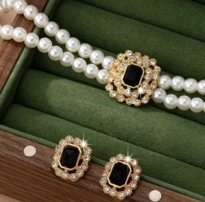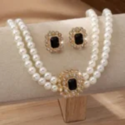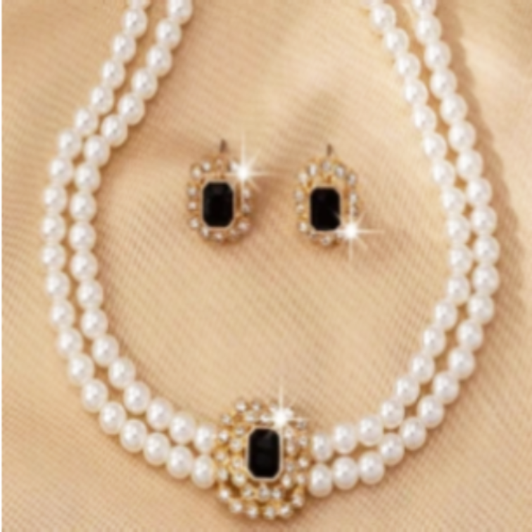 Pearl Geometric Square Earrings Necklace Set (all products free home delivery)